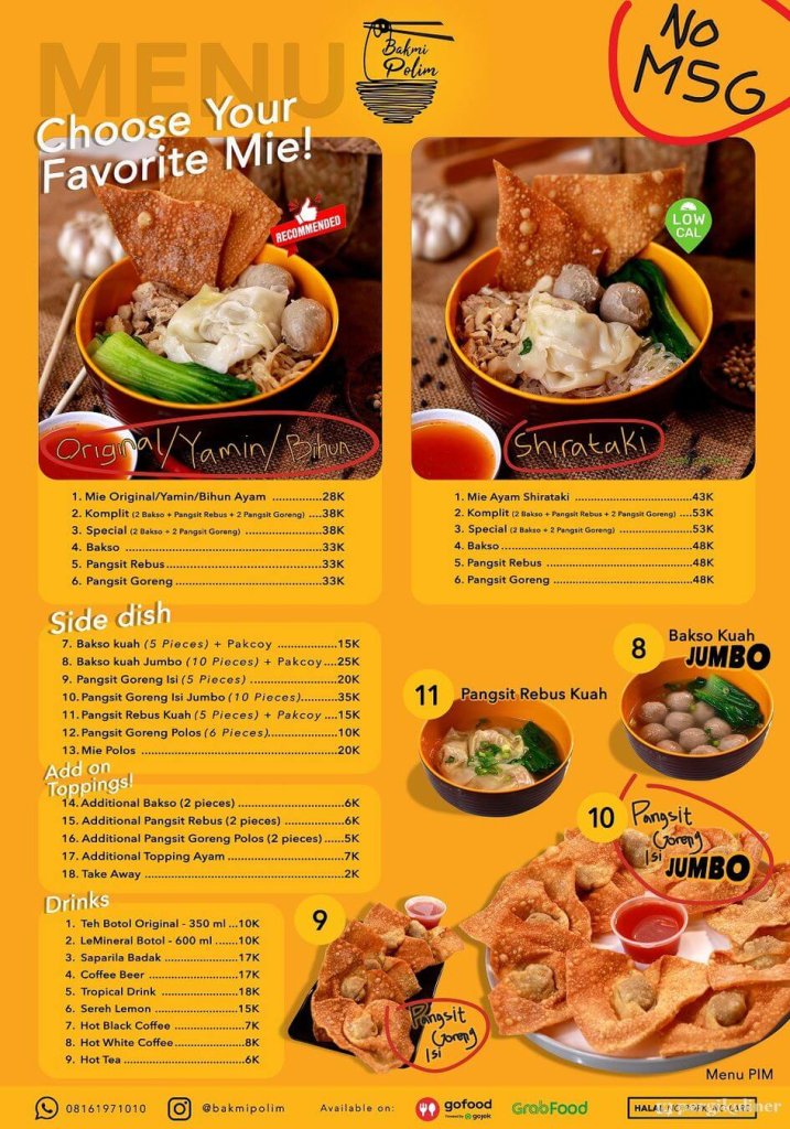 Bakmi Polim menawarkan berbagai pilihan menu yang menggugah selera, di antaranya: