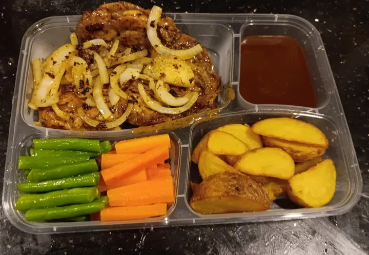 - Disajikan bersama saus krim atau saus lada hitam serta kentang panggang dan salad sayur segar.